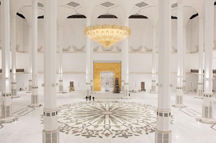 Efter de islamiska pilgrimsfärdsplatserna i Mecka och Medina är det den tredje största moskén i världen. Den är 265 meter hög och minareten är högre än någon annan, medan bönehallen är värd för upp till 36 000 tillbedjare på religiösa festivaldagar. Hela komplexet ger plats för upp till 120 000 besökare varje dag i bönhallen och minareten. Byggnaden består av ytterligare faciliteter som ett museum med ett forskningscentrum för islam, ett konferenscenter, ett bibliotek, en teologisk högskola, lägenheter och infrastruktur byggnader.