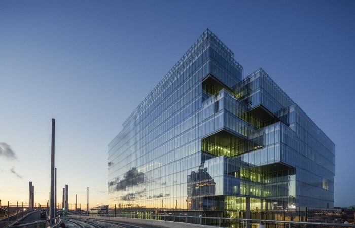Platinan kommer att dra blickarna till sig med sin fasad helt i glas. Totalt får byggnaden, som ska stå klar i slutet av 2021, 60 000 kvadratmeter yta fördelat på 18 våningar. Bild: Vasakronan