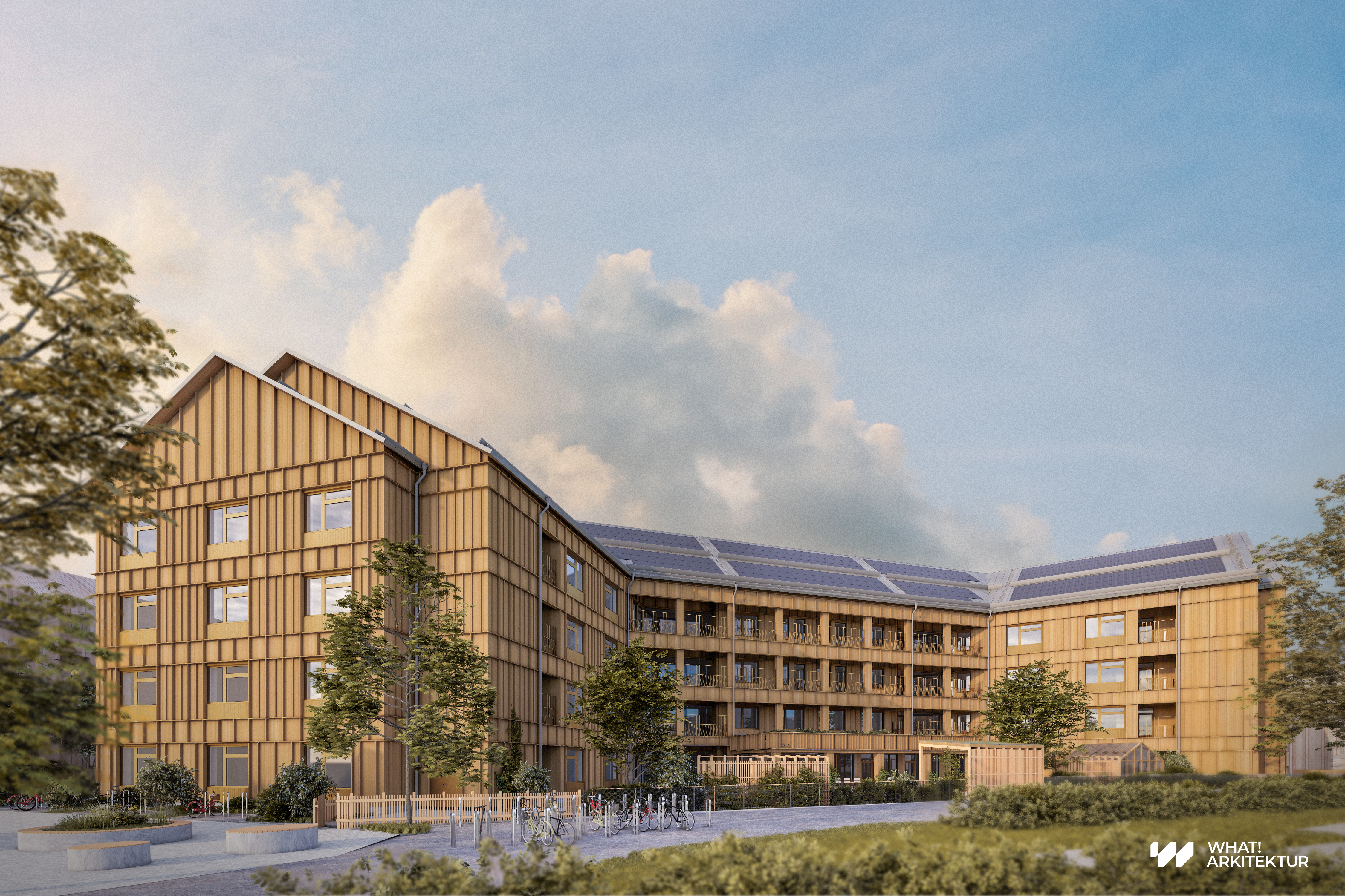 Visualisering över gård. Bild: WHAT! Arkitekttur