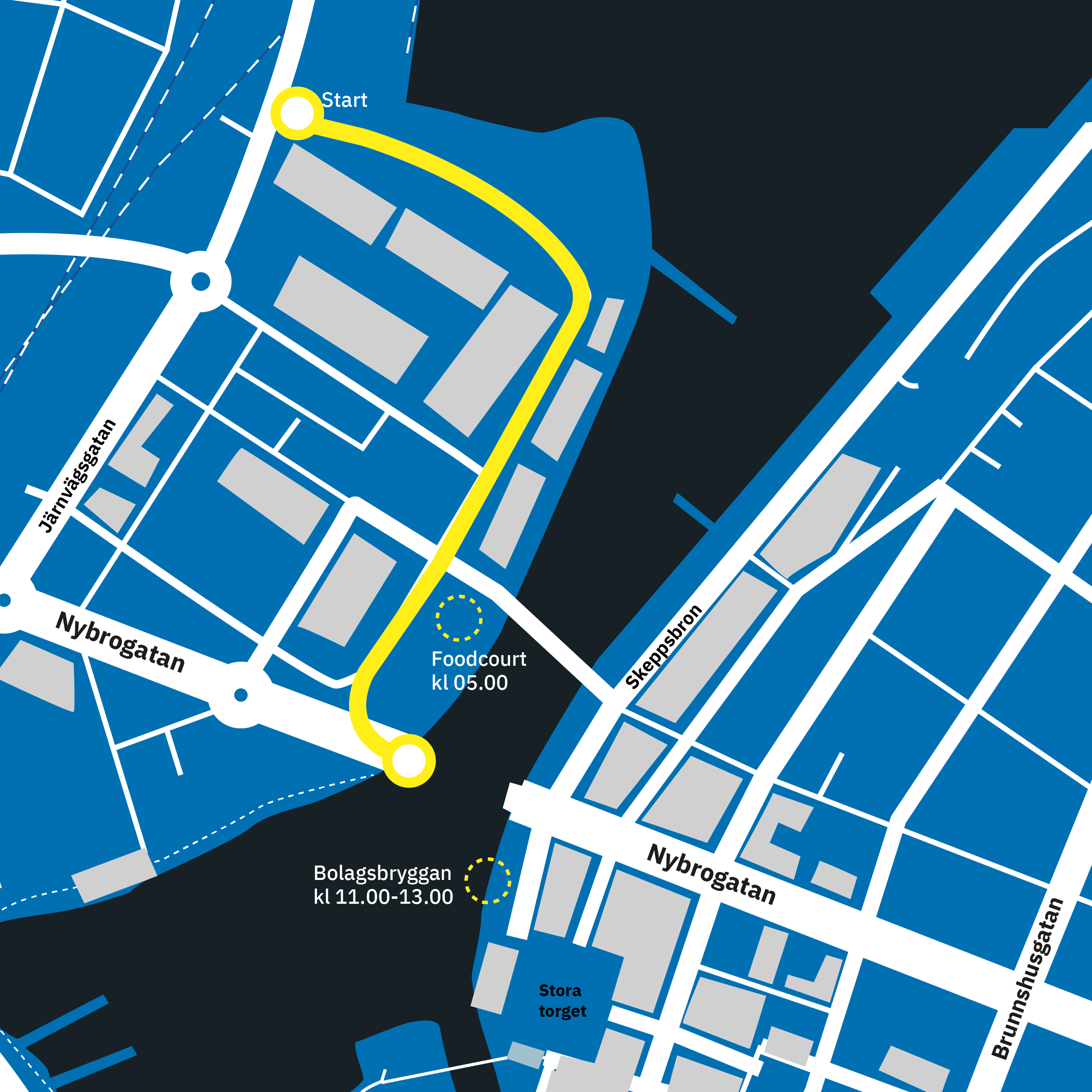 Den här vägen transporterades bågbron gå från Härnösands hamn till brobygget. Bild: Härnösands kommun