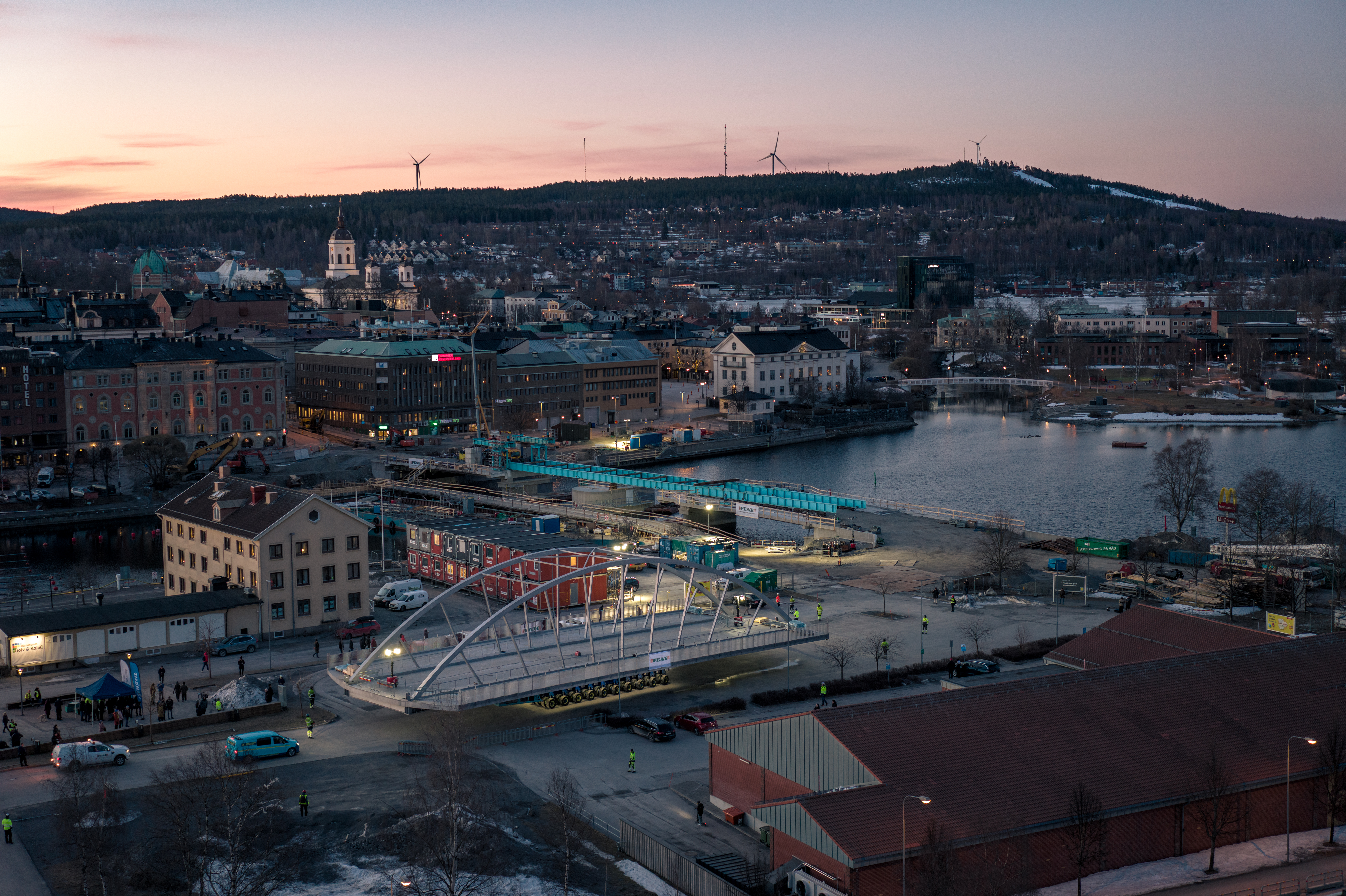 Den vridbara delen av nya Nybron i Härnösand sattes på plats tidigt på morgonen den 24 mars. Den 236 ton tunga stålkonstruktionen transporterades genom staden från hamnen under natten, med mycket små marginaler längs vägen. Bron är en central del i projektet att ersätta den tidigare bron över Nattviken i Härnösands kommun.